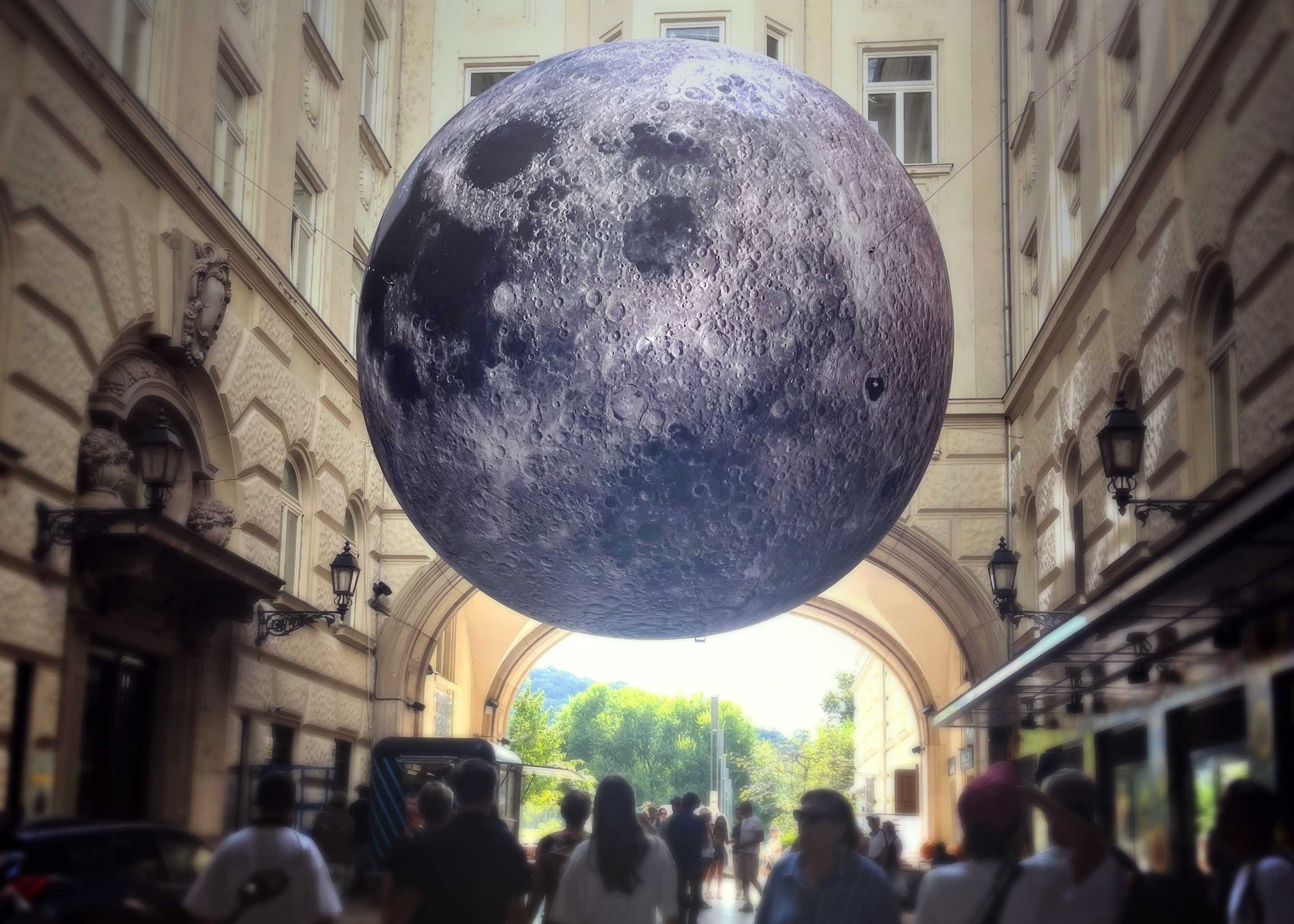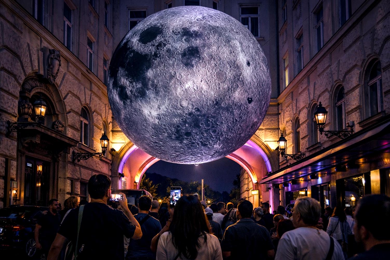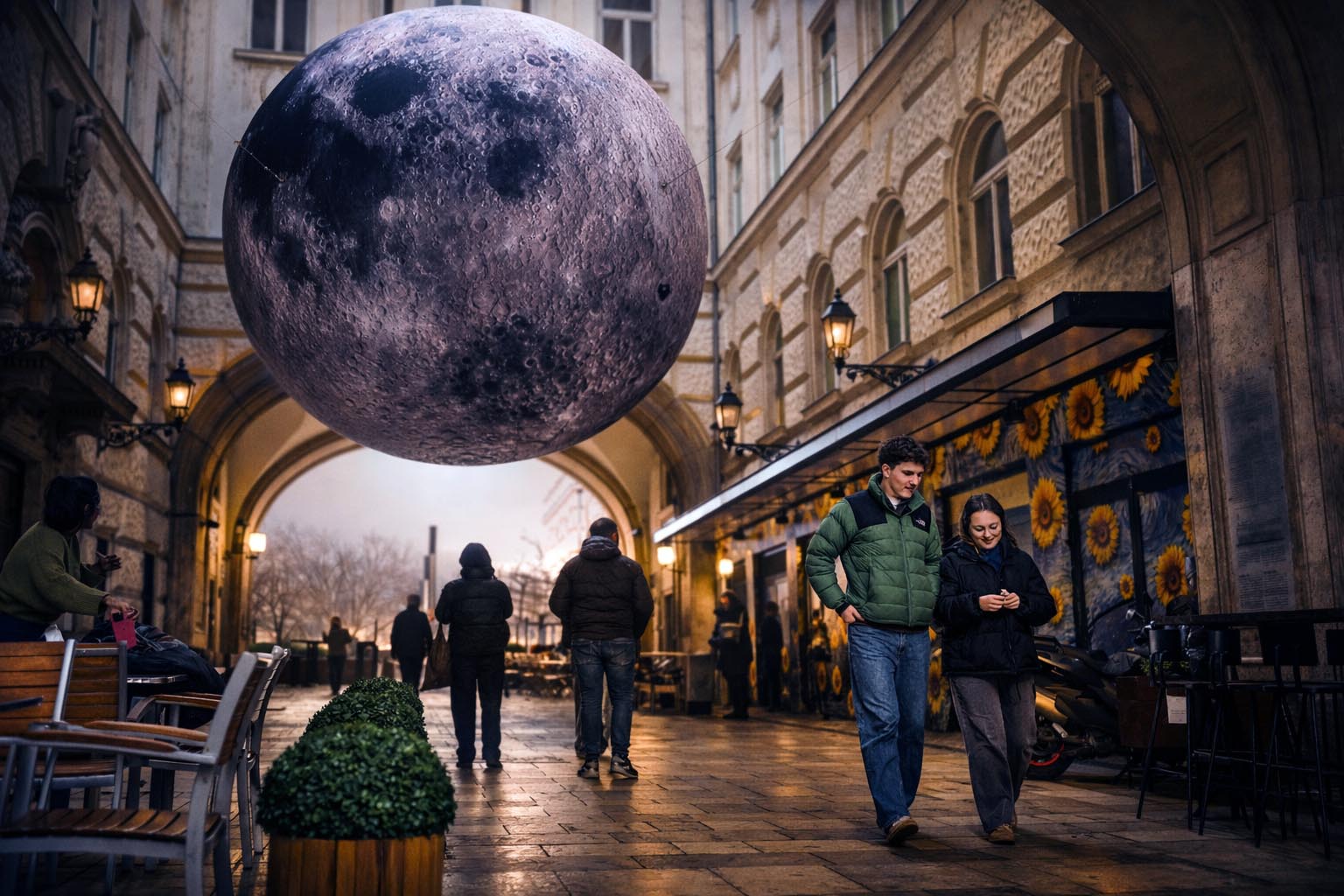 Budapest szívében, a Váci utca és a Március 15. tér között egy valóban egyedülálló látványosság vár: egy lenyűgöző lebegő Hold installáció. Ez az élethű gömb lenyűgöző részletességgel mutatja be a Hold krátereit és felszínét, mágikus hangulatot árasztva, különösen naplemente után. A bájos Piarista köz épületei közé fészkelve a város egyik legfotogénebb pontjává vált.